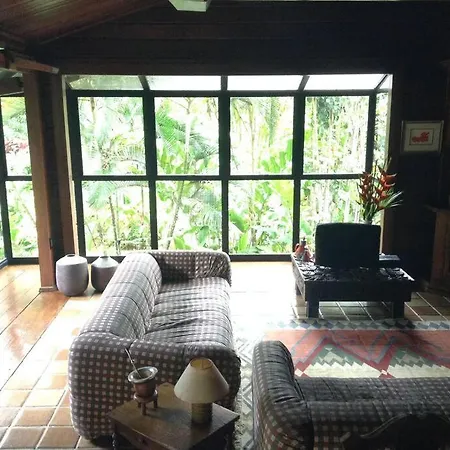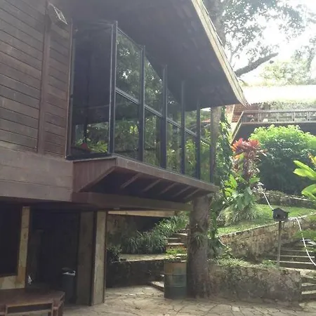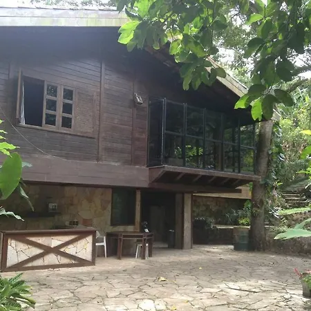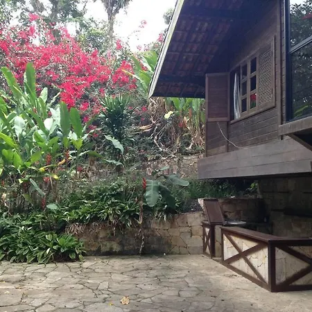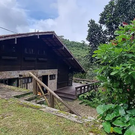 The 3-bedroom Chale Das Heliconias Guaramiranga villa offers proximity to nearby tourist spots, such as Parque das Trilhas, situated approximately 25 minutes' walk away.